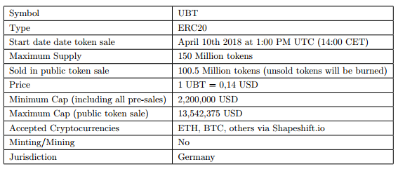 First quarter token (25,125 Mio UBT): 10% bonus